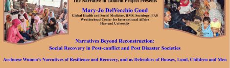 Mary-Jo DelVecchio Good Narratives Beyond Reconstruction: Social Recovery in Post-conflict and Post Disaster Societies Acehnese Women’s Narratives of Resilience and Recovery, and as Defenders of Houses, Land, Children and Men […]